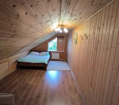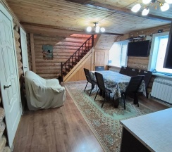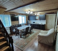 Уютный дом из дерева, рассчитанный на размещение 8 гостей. Дом включает в себя 4 спальни, кухню-гостиную с обеденной зоной, санузел с душем. Также в доме имеется: кондиционер, HD TV. Для гостей за дополнительную плату доступна баня.