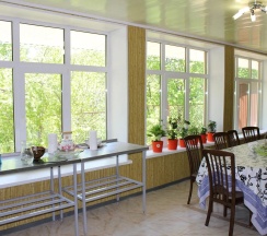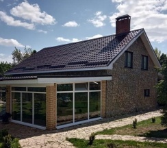 Просторный до, рассчитанный на размещение 12 гостей. Дом включает в себя: 4 спальни, кухню-гостиную с обеденной зоной, 3 санузла, сауну, стеклянную веранду. Также в доме имеется кондиционер. Рядом располагается бассейн. Пользование бассейном и сауной входит в стоимость проживания.