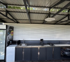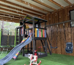 На территории оборудованная мангальная зона, несколько террас для посиделок, бар с холодными напитками и закусками, детский уголок с качелями и батутом. При нас устанавливался каркасный бассейн, увы не успели оценить по достоинству.