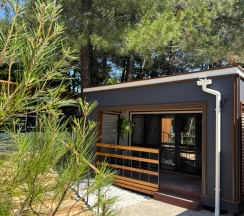 Терассы с неплохим видом на море, есть детская площадка под навесом и каркасный бассейн, магазин с более-менее адекватными ценами, можно вещи стирать бесплатно - удобно с детьми. Но море далековато - надо ездить на машине (и платить за парковку) или такси, а пляж переполнен.
