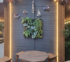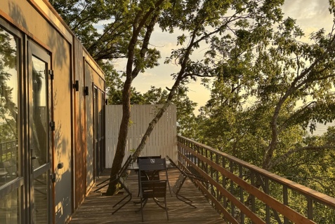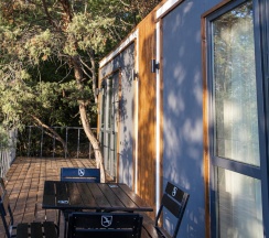 Домики оформлены современно и со вкусом, внутри есть всё необходимое, в т.ч. гигиенические принадлежности, чай, кофе.
