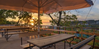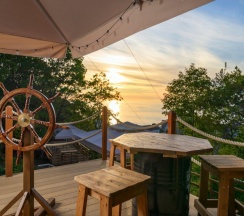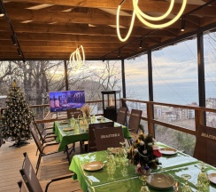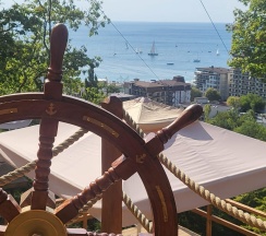 Очень уютное место на склоне среди деревьев и сосен. Захватывающий вид на бухту!