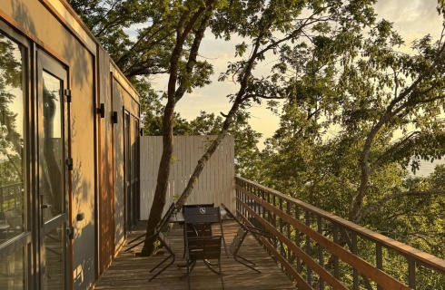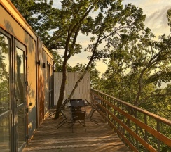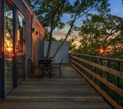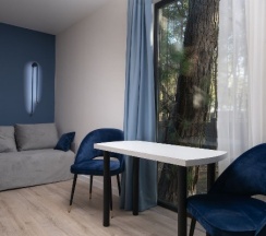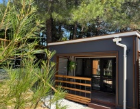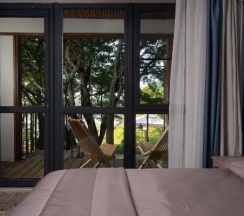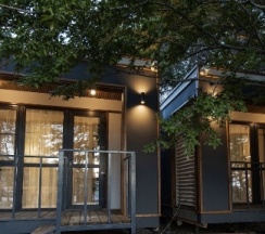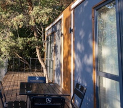 Домики оформлены современно и со вкусом, внутри есть всё необходимое, в т.ч. гигиенические принадлежности, чай, кофе.