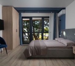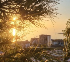 Терассы с неплохим видом на море, есть детская площадка под навесом и каркасный бассейн, магазин с более-менее адекватными ценами, можно вещи стирать бесплатно - удобно с детьми. Но море далековато - надо ездить на машине (и платить за парковку) или такси, а пляж переполнен.