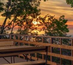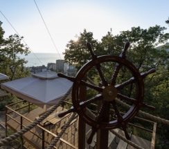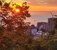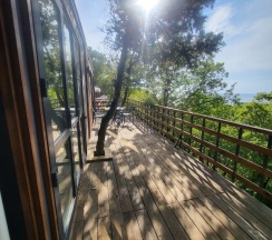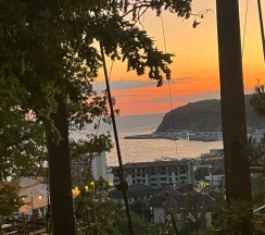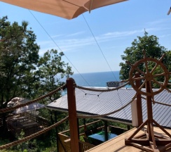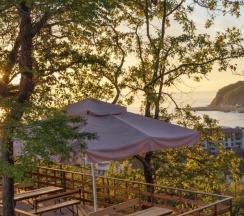 Очень уютное место на склоне среди деревьев и сосен. Захватывающий вид на бухту!