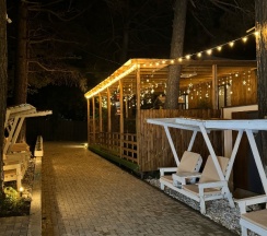 Атмосферная подсветка по всей территории в вечернее время. На мой взгляд, достойный плейлист для аудитории 30+