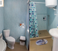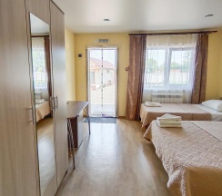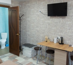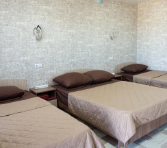 Из удобств для гостей: просторные комнаты с возможностью размещения до 4-х человек. В каждой комнате: 1 двуспальная кровать, 2 полуторные кровати, отдельный санузел и душ, кондиционер, телевизор, стол, стулья, прикроватные тумбы, посуда и столовые приборы, полотенца, гигиенические средства для душа, одноразовые тапочки, электрический чайник. В общем доступе: микроволновая печь, холодильник.