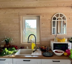 Отдыхали в домике с друзьями всё просто супер! Чисто, уютно, красиво. Отдельный кайф банный чан под открытым небом. Сидели в горячей воде, смотрели на звёзды полное расслабление. Обязательно вернёмся!