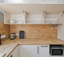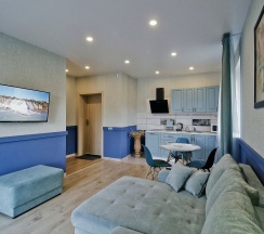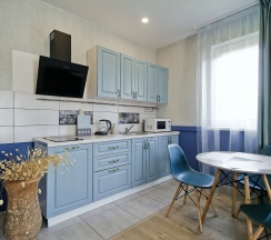 Кухни оснащены необходимой техникой: холодильник, микроволновая печь, электрическая плита, вытяжка, электрочайник, посуда. В комнатах имеются утюги, фен, полотенца, постельное бельё, гладильная доска, smаrt ТV. Есть стиральная и посудомоечная машины.