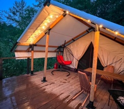 Очень крутое место😍 уютная и уединенная атмосфера с природой 🫶🏻 тишина и спокойствие очень зашли тенты 😍 это первое знакомство с ними)