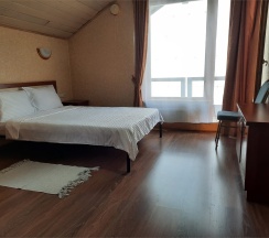 Номер расположен на 3 этаже (15-18 кв.м), с видом на горный пейзаж, балкон. В комнате 2хспальная и односпальная кровати. Максимальное количество гостей 3, можно установить допместо. Из общего коридора –холла есть выход на второй балкон. Из комнаты есть доступ в гостиную и столовую-кухню. Общий большой санузел с душевой кабиной. Отопление, пол- ламинат.