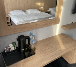 Остановились на ночь по пути на юг. Встретили приветливо, номер оформили быстро, заселились без предварительного бронирования. Номер отличный чистый, все гигиенические принадлежности были, тапочки, чайник +чай, кофе, сахар, холодильник и сейф. Матрас и подушка отличные. Нам с мужем очень понравилось, рекомендую.