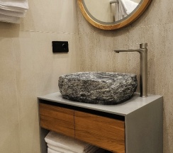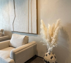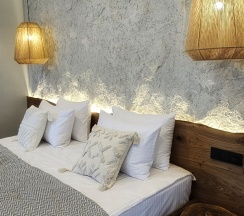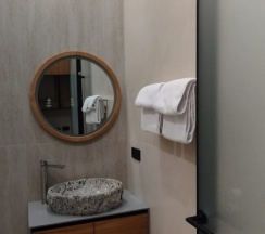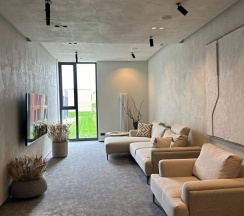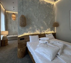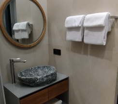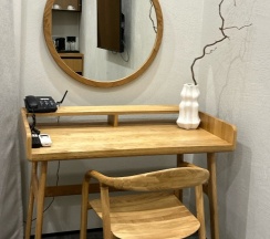 Шикарный ремонт, я как на Бали пожила. Место отличное для тех кто хочет релакса. До города минут 20-40 на авто, это не плюс и не минус просто факт. Кафе рядом вкусные, территория красивая. Персонал приветливый, уборка отличная. Есть комната для глажки вещей.