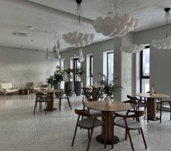 Красивый уютный отель, доброжелательные сотрудники, очень вкусный кофе, интересная концепция интерьера