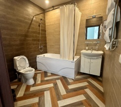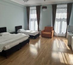 Славный отель. При заселении помогли с вещами! Как родитель двоих карапузов, выбрал «семейный номер». Большой и просторный, малышня спокойно носилась. Напор воды отличный, что опять же для родителя важно. Касаемо чистоты, номер был в отличном состоянии, кроме того, персонал ежедневно проводил уборку. Любые просьбы и вопросы, любезно были оказаны. Кухня в полном наборе, как приготовить, так и подогреть. В целом по всем аспектом одни плюсы. Единственный минус 4 этаж, но ступеньки широкие, подниматься не так тяжело. Мнения 5/5.