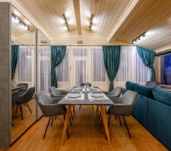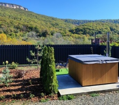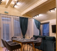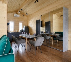 Замечательное место для отдыха, необыкновенное! Выбрали его из-за местоположения на лоне природы и возможности уединиться семьёй в комфортном домике. На территории их всего два. Также на ухоженной территории имеется тёплый бассейн, который всегда содержится в чистоте, и большой батут, которые для наших детей были настоящим развлечением. В домике очень чисто, есть абсолютно всё для комфортного проживания, всё продумано до мелочей. Красивый интерьер, удобная мебель, новая техника, посуда, свежее бельё, мягкие полотенца и халаты и т. д. Здесь всё сделано с душой.
