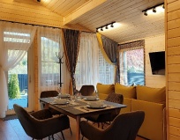 Замечательное место для отдыха, необыкновенное! Выбрали его из-за местоположения на лоне природы и возможности уединиться семьёй в комфортном домике. На территории их всего два. Также на ухоженной территории имеется тёплый бассейн, который всегда содержится в чистоте, и большой батут, которые для наших детей были настоящим развлечением. В домике очень чисто, есть абсолютно всё для комфортного проживания, всё продумано до мелочей. Красивый интерьер, удобная мебель, новая техника, посуда, свежее бельё, мягкие полотенца и халаты и т. д. Здесь всё сделано с душой.