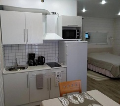 Понравилось: В целом все понравилось, в номере есть все необходимое, был запас круп, макарон, чая, шампуни, ватные палочки, миллион средств от комаров и тд, то есть продуманы многие мелочи, что приятно. Мебель и в целом обстановке довольно простые, без затей. В шаговой доступности озеро, магазины и центр города - в 5 мин на машине.