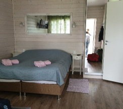 Понравилось: Удивительно чистый воздух, спали с открытыми окнами, очень приятно просто дышать этим воздухом. Дом расположен прямотока берегу озера, есть свой причал, зона барбекю. Удобно расположен. До Рускеалы примерно 25 км, по дороге можно заехать на пороги и водопады, на собачью ферму к хаскам. До границы с Финляндией чуть более 60 км. В 3 км причал с отправлением судов на Валаам, до Валаама 1 час по воде, туда обратно можно зс день обернуться. В домике все необходимое: душ, туалет, плита, холодильник. В летнее время можно посидеть на небольшой террасе с видом на озеро.