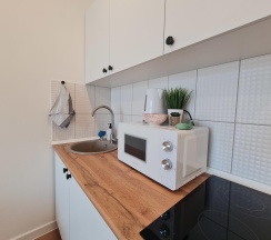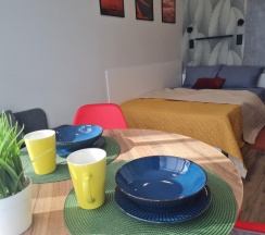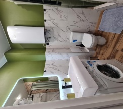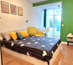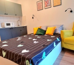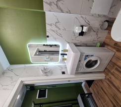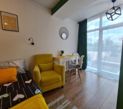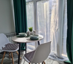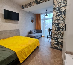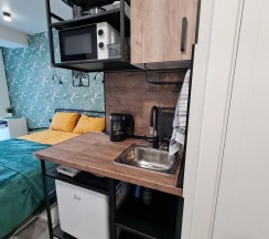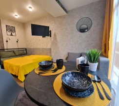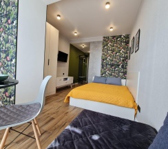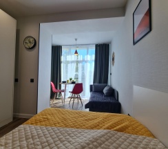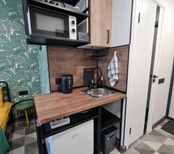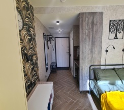 Апартаменты предлагают комфортабельные условия для пребывания, идеально подходящие как для краткосрочного визита, так и для длительного проживания. Здесь вы найдете стильные номера с современным дизайнерским ремонтом и полным набором необходимых удобств, включая качественную мебель, телевизор, быстрый безлимитный интернет, полностью оборудованную кухню с микроволновкой и холодильником, а также стиральную машину и фен в ванной комнате.