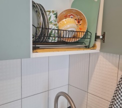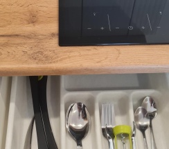 Полностью укомплектованная кухня к вашу использованию. Холодильник, электроплита и чайник, микроволновка. Вся необходимая для готовки посуда для всех гостей. В числе бытовой техники для вас имеются: фен, отпариватель, сплит-система. Средства личной гигиены: шампунь и гель для душа, туалетная бумага, ушные палочки и спонжики. А так же чистое постельное бельё и набор полотенец для двух человек.