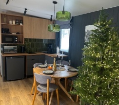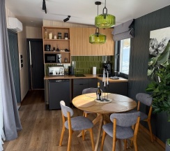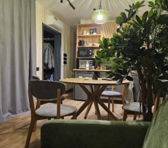 Отличный отель со множеством плюсов. Чистые, новые дома, со стильным интерьером, уютной территорией, продуманными деталями. Впервые встречаю в отеле наличие тостера и СВЧ-печи👍