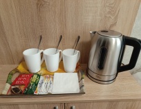 Всё новенькое. Чайник, микроволновая печь, холодильник в наличии. Отличный душ. Кровать с хорошим матрасом. Ну и конечно телевизор со смарт ТВ. Рекомендую хорошее место для ночёвки и отдыха.