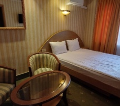 Отличная гостиница в тихом, спокойном месте. Заселили с детьми в замечательный просторный номер. В номере большая двухспальная кровать + раскладной диван. Кондиционер, туалет, душ, большой холодильник, телевизор. После путешествий по городу отлично высыпались в тишине и спокойствии. Завтраки сытные. Персонал очень приветливый и отзывчивый.