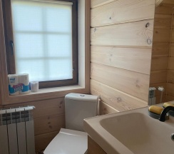В двухэтажном доме комфортно разместятся 8 гостей. На первом этаже просторная гостиная с большим обеденным столом, двуспальным раскладным диваном и полностью оборудованной кухней. К услугам гостей современная техника: холодильник, плита, микроволновая печь, стиральная машина и водонагреватель, телевизор. На втором этаже три уютные спальни: две с двуспальными кроватями и одна с двумя односпальными. На территории дома мангал с шампурами, парковочное место.