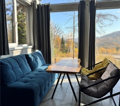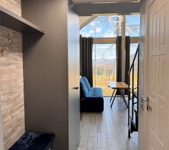 Приезжали на выходные с 29.11 по 01.12. Все очень удобно сделано, кухня не большая, но со всем необходимым. Виды конечно, просто шикарные, а камин с живым огнем 🔥