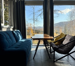 Приезжали на выходные с 29.11 по 01.12. Все очень удобно сделано, кухня не большая, но со всем необходимым. Виды конечно, просто шикарные, а камин с живым огнем 🔥