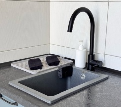 Есть индукционная плита, микроволновка, холодильник, посуда для приготовления (все новое ), камин, телевизор,мангал с термометром, очень чистая уборная и душевая, теплый пол. Вид потрясающий! Халаты, полотенца- предоставляют. Цена на проживание приемлемая, мы попали под акцию двое суток бронируешь- третьи в подарок. Супер ! Рекомендую!