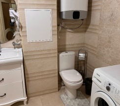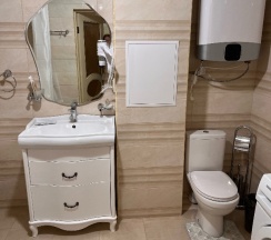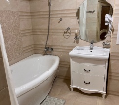 Понравилось всё! Номер огромный, с отличной большой двуспальной кроватью и дополнительной односпальной. В номере телевизор, холодильник, чайник, фен, кондиционер, посуда. Душ, унитаз, умывальник - все новенькое и чистенькое.