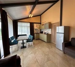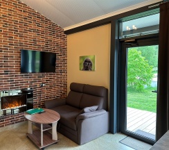 Современное оснащение домов соответствует европейскими стандартами. В каждом доме есть электрокамин, установлен теплый пол. Панорамные окна с выходом на собственную террасу, мангальную и костровую зону расширят пространство вашего отдыха. Отличный сервис и радушие персонала гостиницы, оставят самые положительные эмоции.