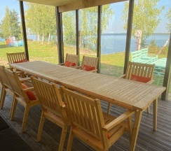 Снимали домик на берегу в будни, номер 5. Отдохнули в тишине ,порыбачили .Очень удобно расположен домик прямо с выходом на озеро, рекомендую рыбакам . Так же семейством уточек постоянно находились с нами что радовало наших деток. В самом домике чисто уютно, канал с мультиками показывает , это был главный пункт нашего отдыха. Уже забронировали к вам на осень . Отличная база, рекомендую.