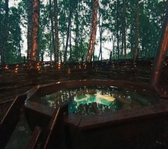 Вечером забронировали баню и чан. Жар и температура воды - идеальные. Сама банька уютная, подходит для компании из 4ех человек.