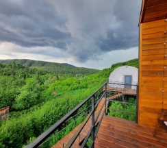 Чудесное место для отдыха и уединения с природой! Домики новые, ухоженные, есть все для комфортного проживания! Мы жили в Сфере. В доме есть кондиционер, wi-fi, фен, полотенца, чай/кофе и мыльно-рыльные принадлежности. Так же в доме есть коробочка с настольными играми, что позволит разнообразить досуг. Наверно,единственный минус-в жару сфера сильно нагревается и приходилось пережидать на улице в теньке)) Кстати, было бы здорово приобрести зонт, чтобы в жаркие дни можно было спрятаться от палящего солнца, проводя время на улице. Виды здесь открываются шикарные! Мы и завтракали на веранде, наслаждаясь видом, и проводили время вечером. Иногда в гости заходит местная кошечка, очень ласковая. Так же хочется отдельно поблагодарить администратора Татьяну за гостеприимство! Встретила, все показала, всегда готова была помочь.