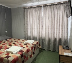Уютный номер с 2-мя нераздвижными, односпальными кроватями, образующую большую двуспальную кровать, размером 160*200 см., ортопедическими матрацами высотой 22 см. Номер комплектуется телевизором 32", с фильмотекой, WiFi, одноразовыми тапочками, средствами гигиены (гель, шампунь), санузлом с душевой кабиной и тропическим душем, феном, удобным шкафом для личных вещей.