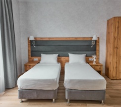 Новые комфортабельные апартаменты с возможностью размещения для 2 гостей - с одной двуспальной или двумя односпальными кроватями.