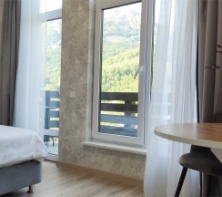"Панорама Гор" – уютные апартаменты различных категорий, которые были построены в 2024 году. Расположены в живописном горном уголке, где каждый день начинается с потрясающих видов и свежим горным воздухом.