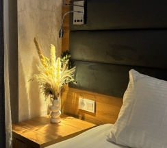 Красивы, удобный, новый, современный отель. В номере всё есть. Большой телевизор, холодильник, кондиционер, чайник .Отличный душ. Классная кровать. Остались только положительные эмоции.