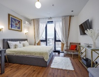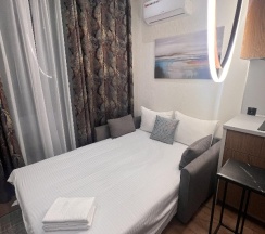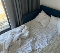 Быстрое заселение. В номере чисто, всё необходимое есть. Хороший вариант для отдыха или работы. Номер уютный, всё необходимое имеется. Кровать удобная, санузел чистый. Вид красивый на город. Рядом парк, магазины, метро, тц и т.п.