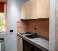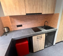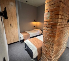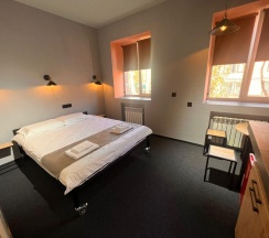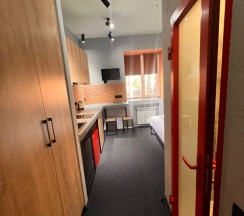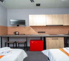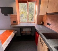 Апартаменты для 2 гостей представляют собой уютное и современное пространство, идеально подходящее для семейного отдыха или встречи с друзьями. В интерьере гармонично сочетаются элегантные линии и минималистичный дизайн лофт. Спальная зона: уютные односпальные кровати с качественными матрасами и мягкими подушками. Дополнительное спальное место, односпальная кровать. Постельное белье из натуральных тканей приятных оттенков. Кухня: полностью оборудованная кухня с современной техникой (холодильник, плита, микроволновка, электрический чайник). Набор посуды и столовых приборов для приготовления и приема пищи, удобный стол. Ванная комната: современные сантехнические устройства, душевая кабина, бойлер, фен, зеркало. Мягкие полотенца и набор средств гигиены. Дополнительные удобства: гладильные принадлежности, бесплатный Wi-Fi, телевизор с плоским экраном, вместительный шкаф.