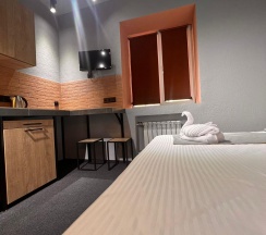 Маленький номер, переночевать вдвоём и с утра приготовить себе завтрак после душа, самое то что нужно.