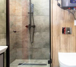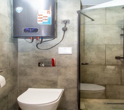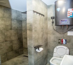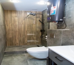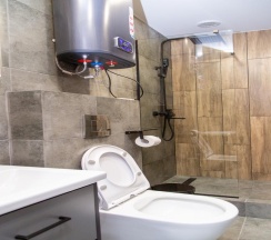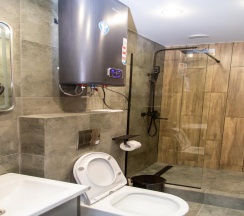 Апартаменты для 3 гостей представляют собой уютное и современное пространство, идеально подходящее для семейного отдыха или встречи с друзьями. В интерьере гармонично сочетаются элегантные линии и минималистичный дизайн лофт. Спальная зона: уютная двуспальная кровать с качественным матрасом и мягкими подушками. Дополнительное спальное место, односпальная кровать. Постельное белье из натуральных тканей приятных оттенков. Кухня: полностью оборудованная кухня с современной техникой (холодильник, плита, микроволновка, электрический чайник). Набор посуды и столовых приборов для приготовления и приема пищи, удобный стол. Ванная комната: современные сантехнические устройства, душевая кабина, бойлер, фен, зеркало. Мягкие полотенца и набор средств гигиены. Дополнительные удобства: гладильные принадлежности, бесплатный Wi-Fi, телевизор с плоским экраном, вместительный шкаф.