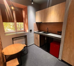 Апартаменты мужские с подселением для 4 -х гостей представляют собой уютное и современное пространство, идеально подходящее для семейного отдыха или встречи с друзьями. В интерьере гармонично сочетаются элегантные линии и минималистичный дизайн лофт. Спальная зона: уютная двуспальная кровать с качественным матрасом и мягкими подушками. Дополнительное спальное место, односпальная кровать. Постельное белье из натуральных тканей приятных оттенков. Кухня: полностью оборудованная кухня с современной техникой (холодильник, плита, микроволновка, электрический чайник). Набор посуды и столовых приборов для приготовления и приема пищи, удобный стол. Ванная комната: современные сантехнические устройства, душевая кабина, бойлер, фен, зеркало. Мягкие полотенца и набор средств гигиены. Дополнительные удобства: гладильные принадлежности, бесплатный Wi-Fi, телевизор с плоским экраном, вместительный шкаф.