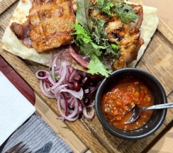 Видовой ресторан, красивый вид на горы. Есть терраса. Очень интересное и вкусное меню. Есть и европейская кухня и местная. Все получается отлично. Персонал любезный.