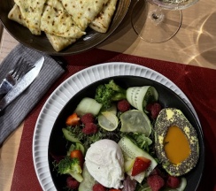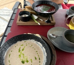 Вся еда очень вкусная. В меню достаточно позиций, при этом не теряешься в выборе. Очень вежливые и общительные официанты. На веранде прекрасные, теплые пледы чтоб наслаждаться и едой и видами на горы.