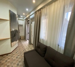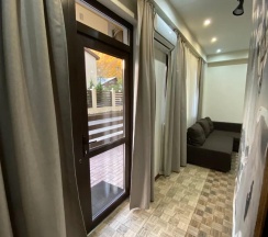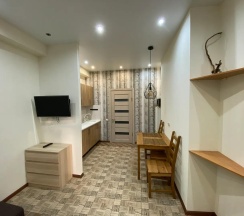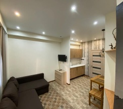 Апартаменты студия с дизайнерским ремонтом и красивым видом на горы. Спальные места:1 односпальная кровать, 1 диван-кровать. Есть wi-fi, утюг, водонагреватель.