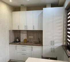 Кухня оборудована всей необходимой техникой и посудой для приготовления и приема пищи. Ванная комната с душевой кабиной и стиральной машиной.
